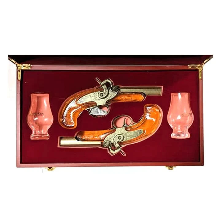 Experience the refined taste and exceptional presentation of the H. Deringer Pistol Set Bourbon Whiskey Gift Set, available now at BlackBook Spirits.