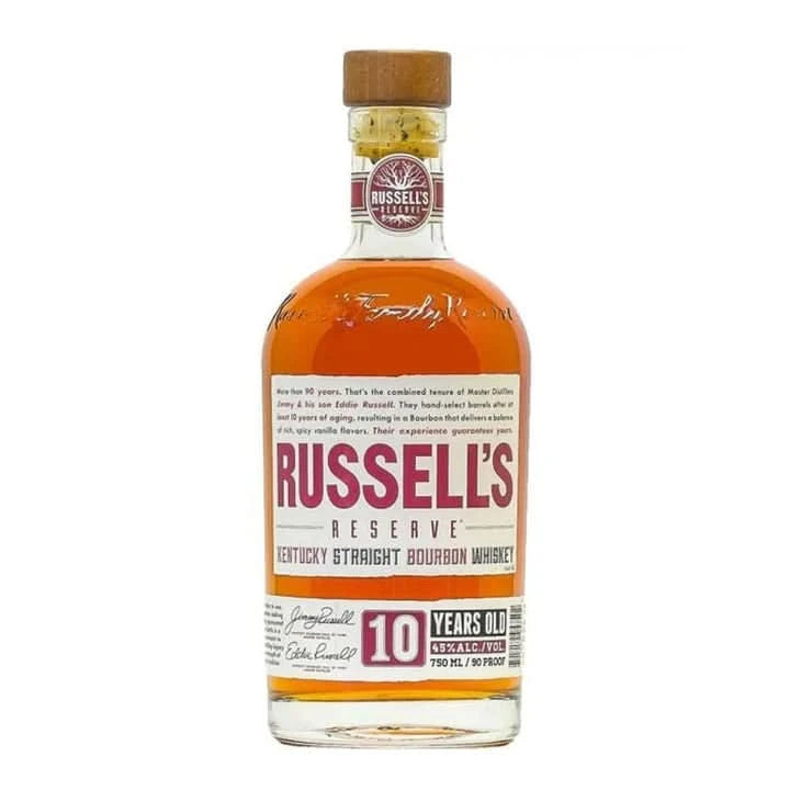 Why You'll Love It: Russell's Reserve 10 Year Bourbon Whiskey is crafted by legendary Master Distillers Jimmy and Eddie Russell, who have over 100 years of combined experience. This bourbon is a testament to their dedication and expertise, offering a rich and complex flavor that is perfect for sipping neat, on the rocks, or in your favorite bourbon cocktails. Its extended aging process ensures a depth and maturity that sets it apart from other bourbons.